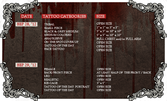 - All participating Tattoo Artists/collectors/models, except Tattoo of the Day participants, are required to pay the entrance fee.